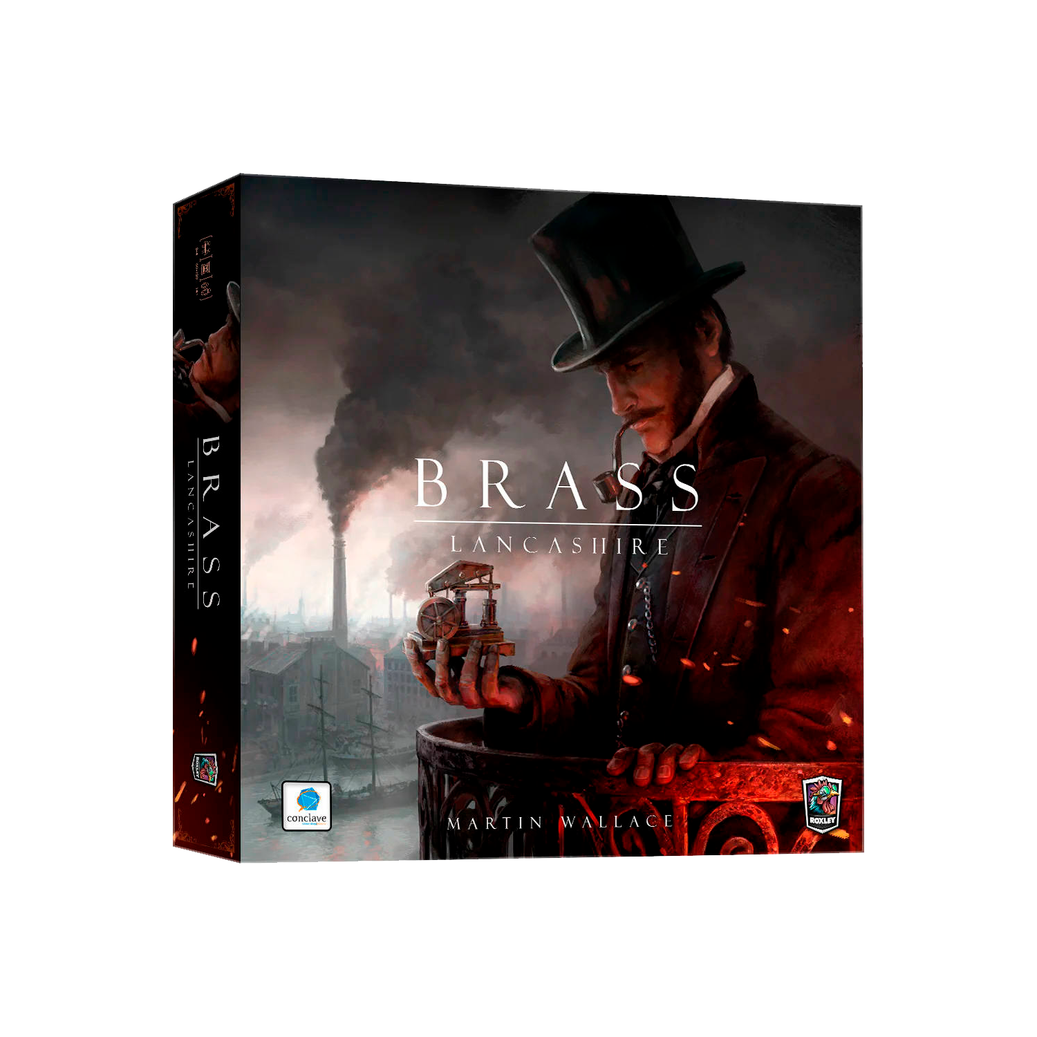 Brass: Lancashire apresenta ilustrações meticulosamente elaboradas por Damien Mammoliti e Mr. Cuddington, um design gráfico elegante e componentes de alta qualidade.