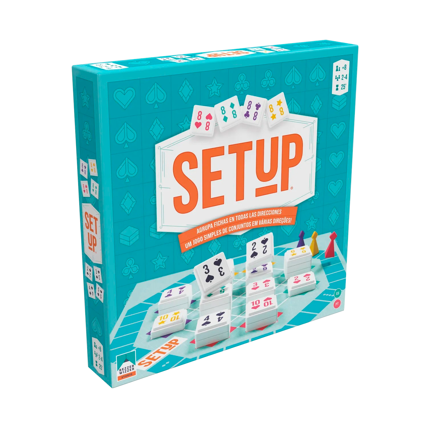 Em SETUP, você cria conjuntos, marcando pontos e movendo seu peão ao redor do tabuleiro. Quantos pontos você marca no seu turno depende de quão bom você é em encontrar e formar sequências, e jogar um conjunto de cartas que possa criar múltiplas combinações no tabuleiro. Mesmo que não seja seu turno, oponentes desatentos podem acabar lhe dando pontos com conjuntos formados em seu espaço bônus, então atenção durante os turnos de todos é fundamental.
