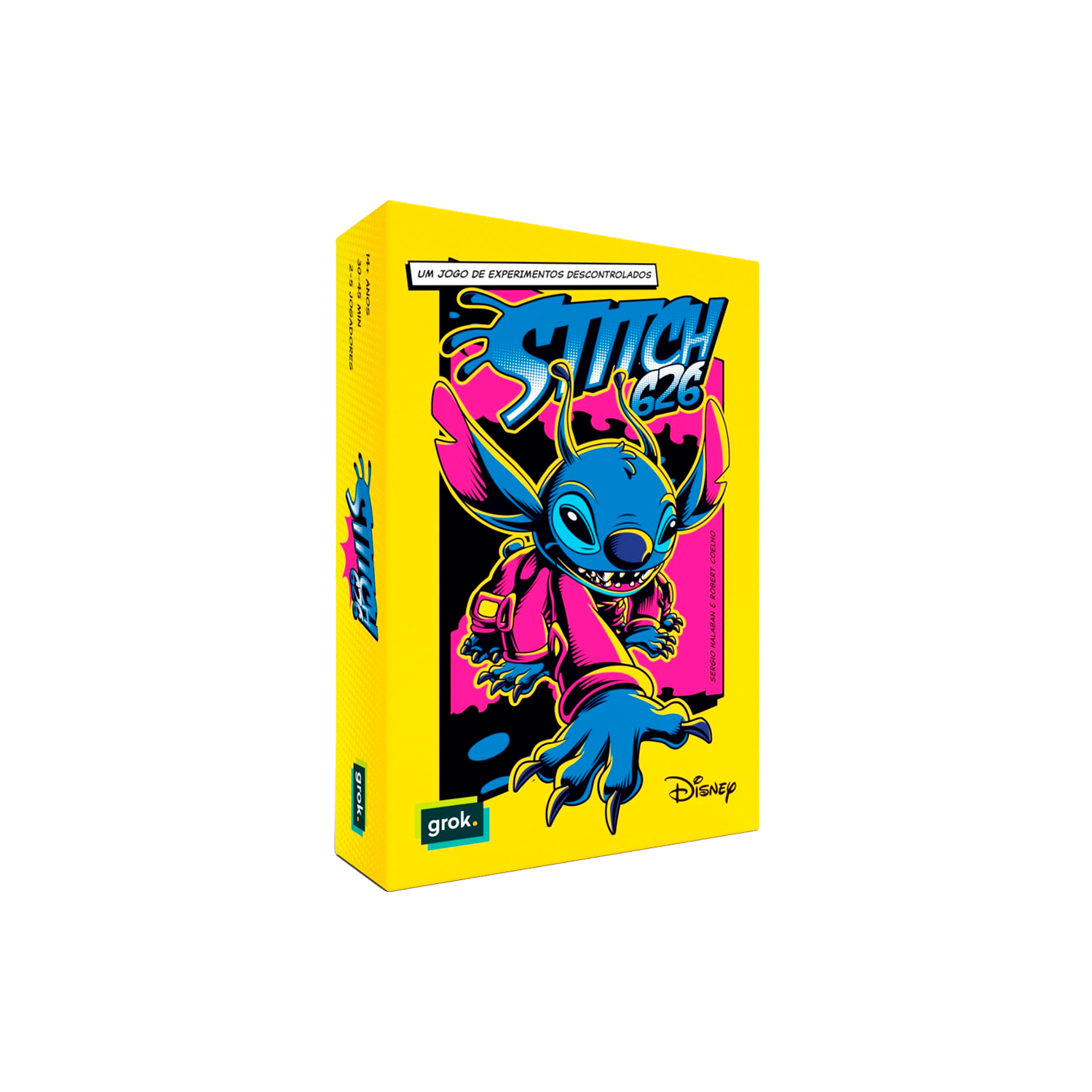 Em Stitch 626, você ajuda o Stitch a encontrar e reunir seus “primos” (experimentos) antes que eles caiam nas mãos do Dr. Hamsterviel. Os jogadores revelam cartas, formam alianças e precisam decidir o momento certo de parar — pois, se um experimento sair do controle, todos podem fugir! É um jogo rápido, com decisões simples e muita interação.