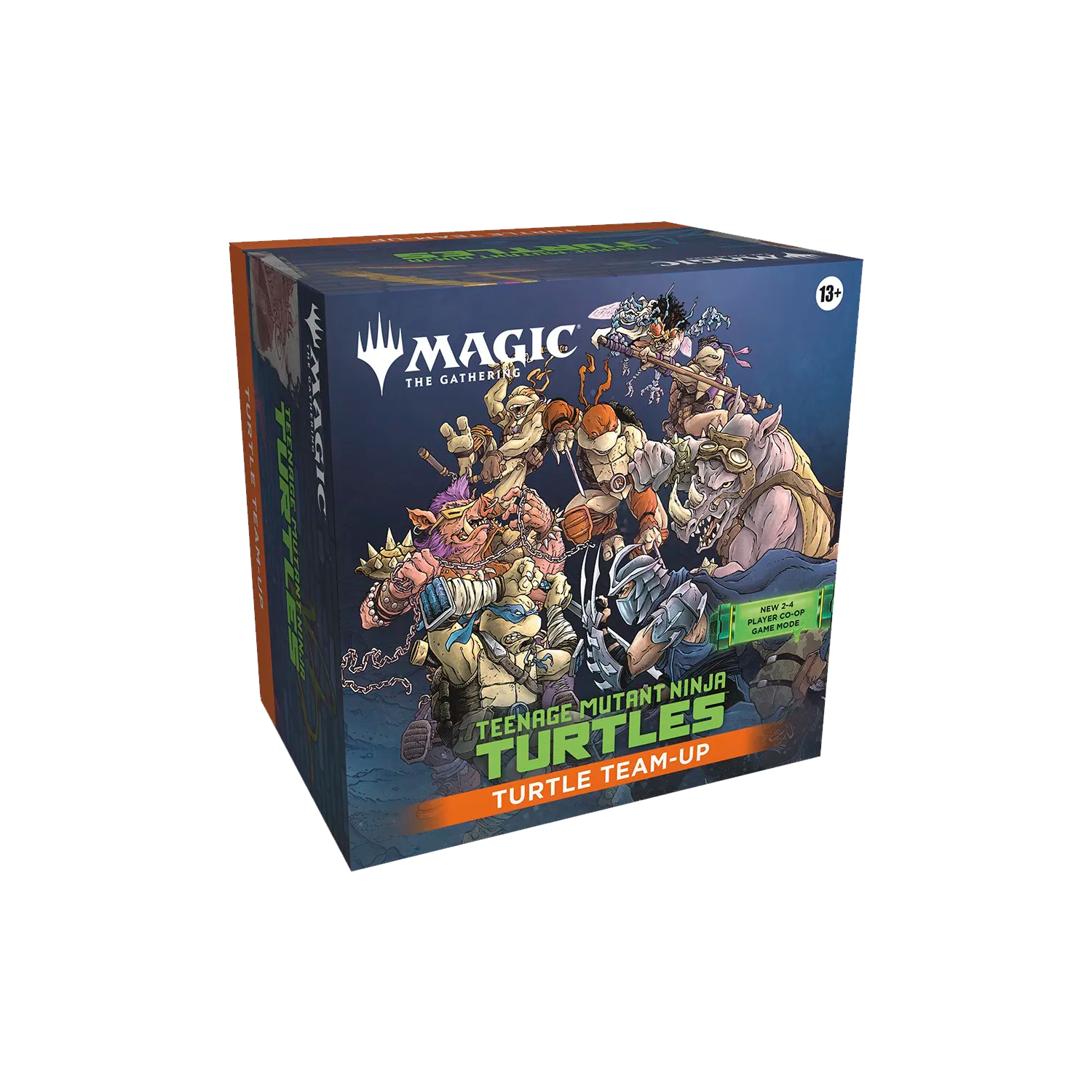 Quando o Shredder ataca, as tartarugas revidam! Neste novo e empolgante formato estratégico cooperativo de Magic: The Gathering, de dois a quatro jogadores batalham pela sobrevivência contra uma horda de adversários vilanescos. Jogue com um dos quatro decks principais pré-construídos de 60 cards, depois amplie suas estratégicas com os Boosters de Jogo incluídos. Formem uma equipe contra o inimigo em comum para que apenas Shredder e sua gangue saiam perdendo! Além disso, é o dojo de treinamento perfeito para jogadores de Magic de qualquer idade e nível de habilidade se juntarem para jogar!